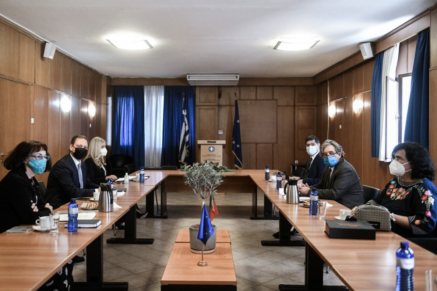 Μία άκρως εποικοδομητική και χρήσιμη συνάντηση είχαν σήμερα ο υπουργός Αγροτικής Ανάπτυξης κ. Σπήλιος Λιβανός με τον Πορτογάλο Υπουργό Θαλασσίων Θεμάτων κ. Ricardo Serrao Santos και τον υφυπουργό Εξωτερικών, αρμόδιο για θέματα Διεθνοποίησης κ.. Eurico Brilhante Dias, με τη συμμετοχή της υφυπουργού Αγροτικής Ανάπτυξης και Τροφίμων κ. Φωτεινής Αραμπατζή.