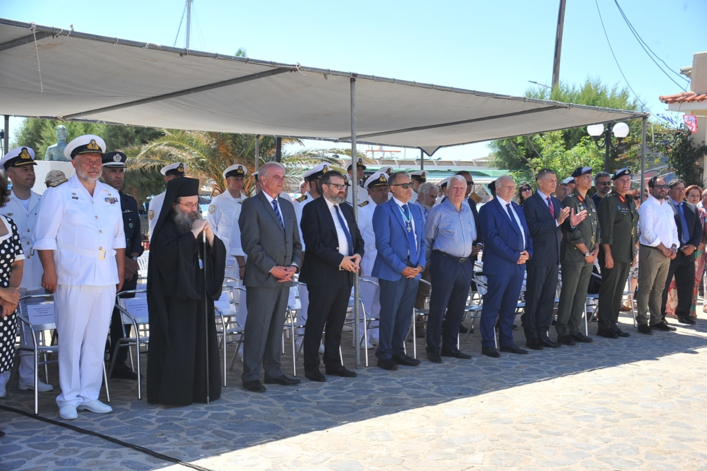 Εν συνεχεία στον κήπο που υπήρχε η οικία του Κωνσταντίνου Κανάρη τελέστηκε τρισάγιο και η απόδοση των εορταστικών τιμών μεταφέρθηκε στην Πλατεία Ηρώων Ολοκαυτώματος με κατάθεση στεφάνων από εκπροσώπους της πολιτικής και στρατιωτικής ηγεσίας και των τοπικών φορέων του νησιού και με απαγγελίες ποιημάτων από την κα. Ελένη Καραγιώργη και τις μαθήτριες – εκπροσώπους της Σχολικής Κοινότητας Αθηνά Κλίτσα και Μαρίσια Κουτσοδόντη.
