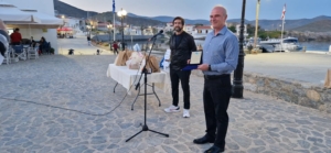 Στην αποχαιρετιστήρια εκδήλωση που έλαβε χώρα στην κεντρική πλατεία του νησιού την Κυριακή 15 Μαΐου, ο Δήμαρχος προσέφερε αναμνηστικά δώρα στην αποστολή και η Πρόεδρος του Πολιτιστικού Συλλόγου «Κωνσταντίνος Κανάρης» Αγγελική Κούτικα Σκαρλέτου προσέφερε καλάθι με τοπικά προϊόντα. Η Λέσχη εκπροσωπήθηκε από τον Αντιπρόεδρο Νίκο Ροδόπουλο, καθώς ο Πρόεδρος Πάνος Καραμεσίνης απουσίαζε λόγω προβλήματος υγείας.