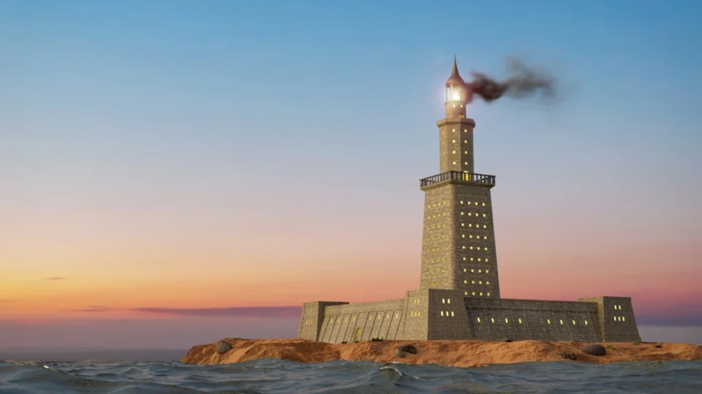 Χτισμένος στην είσοδο της Αλεξάνδρειας, του μεγάλου μεσογειακού λιμανιού και πρωτεύουσας της Πτολεμαϊκής Αιγύπτου, ένας γιγαντιαίος φάρος από γρανίτη και ασβεστόλιθο υψωνόταν ως ένα από τα πλέον χαρακτηριστικά σύμβολα της ελληνιστικής εποχής. Με ύψος περίπου 140 μέτρα, ήταν το δεύτερο ψηλότερο οικοδόμημα του αρχαίου κόσμου μετά τη Μεγάλη Πυραμίδα της Γκίζας — το μοναδικό από τα επτά θαύματα που σώζεται έως σήμερα. Ο Γρηγόριος της Τουρ, επίσκοπος του 6ου αιώνα μ.Χ., τον χαρακτήρισε έβδομο θαύμα του αρχαίου κόσμου. Το ισχυρό φως του αποτελούσε νυχτερινή κάλυψη για τους ναυτικούς που πλησίαζαν τις επικίνδυνες ακτές της Αιγύπτου.