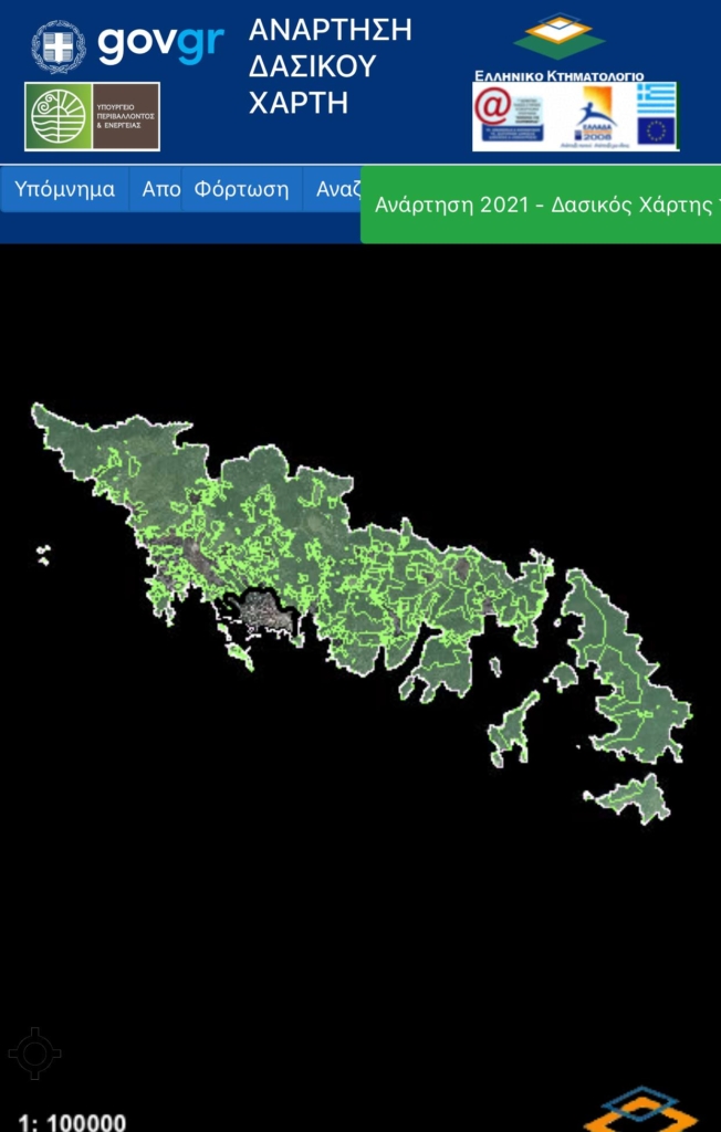 Μπορεί να είναι εικόνα χάρτης και κείμενο που λέει "govgr Υπόμνημα Αποφάσεις ΑΝΑΡΤΗΣΗ ΔΑΣΙΚΟΥ ΧΑΡΤΗ 694088.27 4265540.174 ΝΟΜΟΣ:Χ ΟΙΝΟΥΣΣΩΝ αρακτηρισμός κτοσης: Δ Φόρτωση Αναζήτηση"