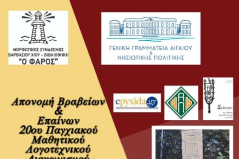 Ολοκληρώθηκε ο 20ος Παγχιακός Μαθητικός Λογοτεχνικός Διαγωνισμός «Ανδρέας Αξιωτάκης» του Μορφωτικού Συνδέσμου...
