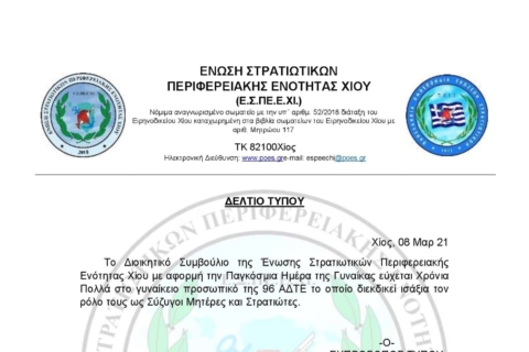 Χίος, 08 Μαρ 21 To Διοικητικό Συμβούλιο της Ένωσης Στρατιωτικών...