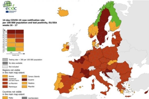 Κορωνοϊός-ECDC: Στο πράσινο ο δείκτης θετικότητας στην Ελλάδα [χάρτες]