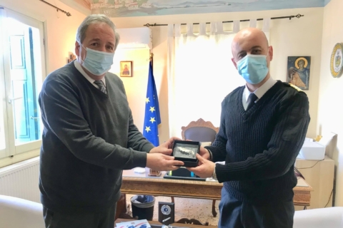 Ο Δήμαρχος Οινουσσών αποχαιρετά τον Διοικητή της ΑΕΝ Οινουσσών Παντ. Βατούση