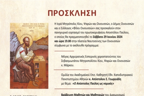ΟΙΝΟΥΣΣΕΣ & ΨΑΡΑ / ΠΟΛΙΤΙΣΜΟΣ / ΧΙΟΣ 21.06.2024 - 6:10 μμ