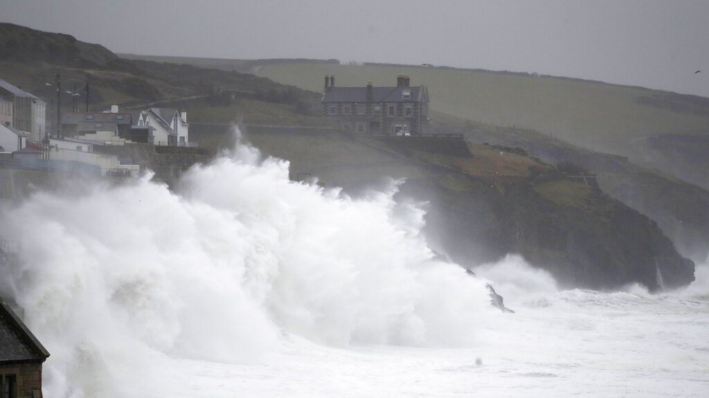 Η καταιγίδα Κάθλιν, όπως ονομάστηκε το κύμα κακοκαιρίας, αναπτύχθηκε από την προηγούμενη Πέμπτη στον Ατλαντικό και γινόταν όλο και ισχυρότερη πλησιάζοντας στις δυτικές ακτές της Ιρλανδίας.