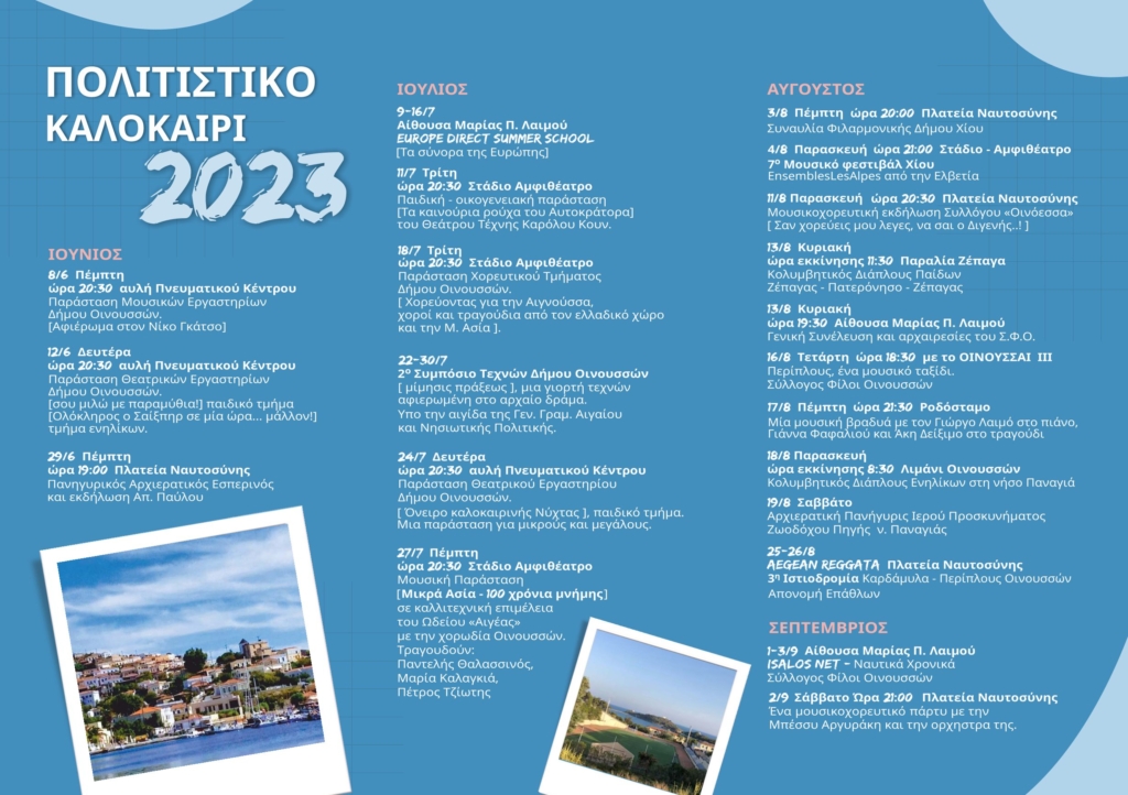 Δήμος Οινουσσών Πολιτιστικό Καλοκαίρι 2023