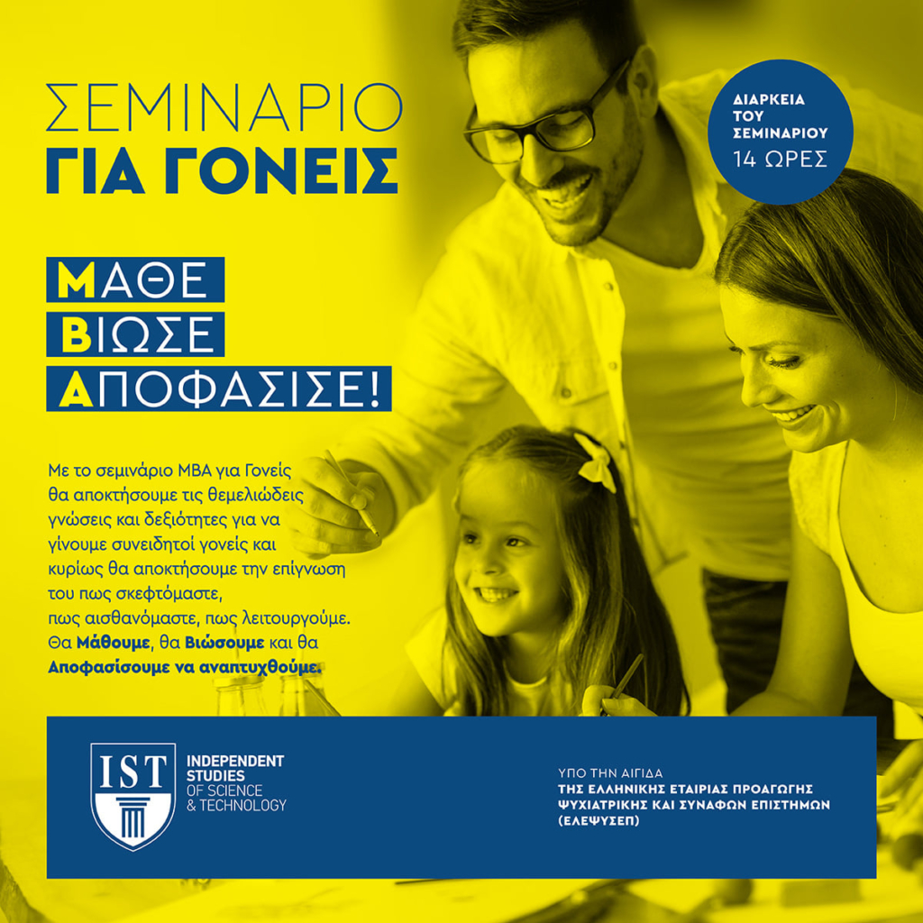 Δήμος Ψαρών: Πολύ ενδιαφέρον online σεμινάριο με θέμα “ΜΒΑ για Γονείς” (Μάθε-Βίωσε-Αποφάσισε) του IST College