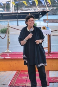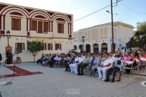 Χαιρετισμούς απηύθυναν ο Πρόεδρος του Κοινωφελούς Ιδρύματος «Μαρία Τσάκος» κ. Ευθύμιος Μητρόπουλος, η Α’ Αντιπρόεδρος της Ιστορικής Εθνολογικής Εταιρείας κα. Μαριέττα Μινώτου και ο Hub Manager του καταστήματος Χίου – της Τράπεζας Πειραιώς κ. Κυριάκος Σιδεριδάκης.