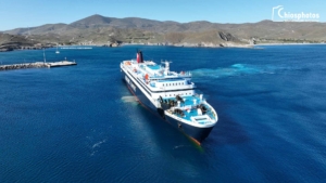 Εντυπωσιακές εικόνες από την άφιξη του Νήσος Ρόδος στα Ψαρά. Το αρχοντοβάπορο της Hellenic Seaways συνδέει το μικρό νησάκι των 350 κατοίκων, τα Ηρωικά Ψαρά, με τον Πειραιά δίνοντας έτσι ζωή σε ένα από τα πιο ιστορικά ακριτικά μας νησιά. Οι εικόνες είναι εντυπωσιακές και μαγεύουν τον επισκέπτη όταν αντικρίζει το πλοίο από ψηλά να εισέρχεται στο λιμάνι, από την ιστορική μαύρη Ράχη των Ψαρών. Το πλοίο δένει στον ντόκο κάτω από το επιβλητικό άγαλμα της Δόξας των Ψαρών που στέκεται εκεί ψηλά και μας θυμίζει την ιστορία αυτού του τόπου.