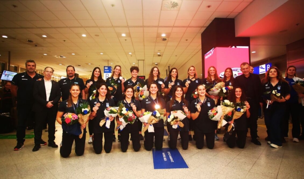 Το απόγευμα της Παρασκευής, η αποστολή της Εθνικής Πόλο γυναικών επέστρεψε στην Ελλάδα και κατά την άφιξή της, αποθεώθηκε και καταχειροκροτήθηκε, με τις αθλήτριες να εμφανίζονται χαμογελαστές και να παραλαμβάνουν ανθοδέσμες. Αξίζει να τονιστεί ότι στο σημείο βρέθηκε τόσο ο Υπουργός Αθλητισμού, Γιάννης Βρούτσης όσο και ο Γενικός Γραμματέας Αθλητισμού, Γιώργος Μαυρωτάς. Στη συνέχεια, η ομάδα πόζαρε στον φακό με τα χάλκινα μετάλλια, με τις παίκτριες παρά την κούρασή τους να μην κρύβουν την χαρά και τη συγκίνησή τους την οποία μοιράστηκαν με τα δικά τους άτομα.