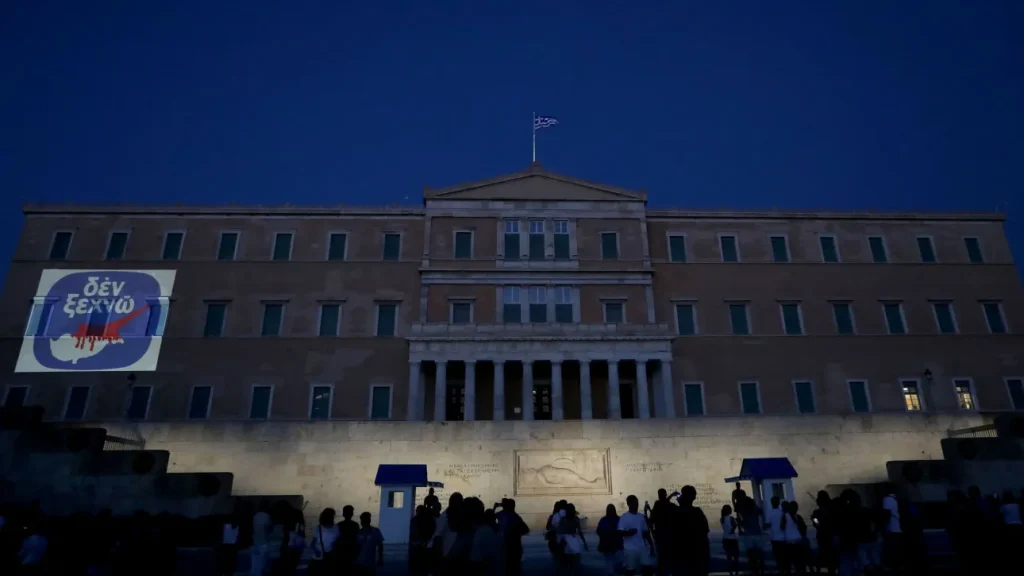 Φωταγώγηση της Βουλής με το «Δεν Ξεχνώ» για την τουρκική εισβολή στην Κύπρο