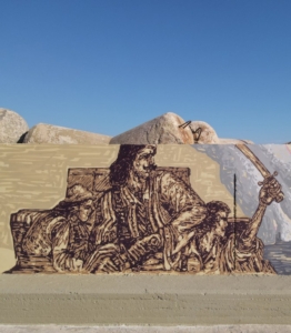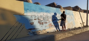 Η θεματική της δημόσιας τοιχογραφίας εστιάζει σε χαρακτηριστικά στιγμιότυπα από την ιστορία του νησιού μας, τα οποία αποτυπώθηκαν με την ιδιαίτερη τεχνική των street-artists, Κez και Same84.