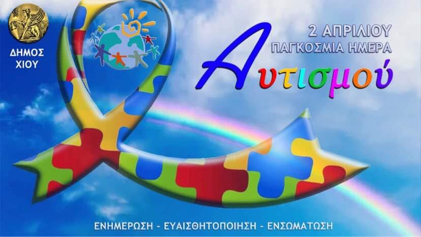 Η Παγκόσμια Ημέρα Αυτισμού, καθιερώθηκε το 2007 από τον ΟΗΕ και γιορτάζεται κάθε χρόνο στις 2 Απριλίου. Ο Δήμος Χίου προκειμένου να τιμήσει την ημέρα αυτή θα φωταγωγήσει την Παρασκευή (2/4) την Κεντρική Πλατεία του νησιού με τα χρώματα του αυτισμού, ενώ θα τοποθετήσει ενημερωτικό πανό (banner) έξω από το Δημαρχείο. Στόχος του Δημάρχου Χίου, κ. Σταμάτη Κάρμαντζη και της Δημοτικής Αρχής είναι μέσω αυτής της συμβολικής κίνησης να μεταφερθεί το μήνυμα της καταπολέμησης των διακρίσεων και της άρσης των αποκλεισμών με την προώθηση της ίσης συμμετοχής των ατόμων με αυτισμό στο κοινωνικό γίγνεσθαι.