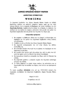 Το παρόν ψήφισμα εγκρίθηκε ΟΜΟΦΩΝΑ στην υπ’ αρ. 5η/3-4-2021 έκτακτη δια περιφοράς συνεδρίαση του Δημοτικού Συμβουλίου Δήμου Ηρωικής Νήσου Ψαρών.