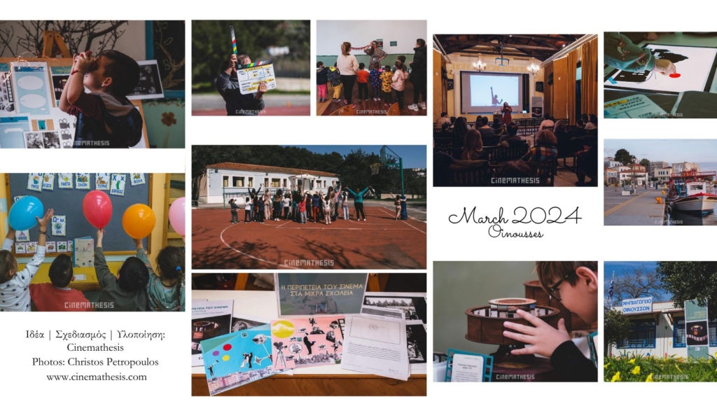 Τρίτη στάση της «Cinemathesis» ήταν το Νηπιαγωγείο Οινουσσών με 7 παιδάκια, γεμάτα αγκαλιές, αγάπη για τα παιχνίδια, τα μπαλόνια, τον Μίκυ, τις «πατάτες που μιλάνε», τους ποτιστές που ποτίζουν, τα μουστάκια με hartotape, τα αυτοκόλλητα, τα μικρόφωνα, τα ακουστικά και τις ηχογραφημένες ιστορίες.