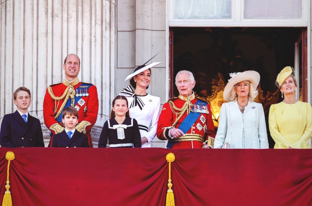 Τις απογευματινές ώρες, το πλήθος ξέσπασε σε χειροκροτήματα καθώς η Πριγκίπισσα Κέιτ βγήκε στο μπαλκόνι με τον Γουίλιαμ και τα παιδιά της στο πλευρό της.