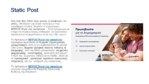 Ενημερώνουμε τους δημότες μας για την πρωτοβουλία Εταιρικής Κοινωνικής Ευθύνης που έχει αναλάβει η Eurobank με στόχο τη στήριξη των νέων οικογενειών στην ακριτική μας περιοχή με στόχο την αντιμετώπιση του δημογραφικού ζητήματος της χώρας μέσω του προγράμματος ‘ΜΠΡΟΣΤΑ για την οικογένεια’. Ειδικότερα το πρόγραμμα εστιάζει στην στήριξη των ακριτικών και απομακρυσμένων περιοχών της χώρας, συμπεριλαμβανομένης και της Χίου. Μέσα από μία σειρά δράσεων και παροχών επιδιώκει να άρει εμπόδια που ενδέχεται να αντιμετωπίσουν τα ζευγάρια με τον ερχομό ενός παιδιού, καταδεικνύοντας παράλληλα τη σημασία και την αξία που έχει η ανάπτυξη βιώσιμων συνθηκών για τις νέες οικογένειες.