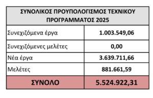 Το νέο Τεχνικό Πρόγραμμα περιλαμβάνει τέσσερα συνεχιζόμενα έργα, δέκα νέα έργα και εφτά τεχνικές μελέτες, που ανταποκρίνονται σε βασικές ανάγκες της τοπικής μας κοινωνίας και έχει συνολικό προϋπολογισμό 5.524.922,31 ευρώ.