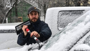 Κάθε φορά που βρίσκουμε καλυμμένο με χιόνι το αυτοκίνητό μας θα πρέπει να το καθαρίζουμε για να βλέπουμε και να μας βλέπουν. Με μια ειδική ξύστρα που πωλείται στο εμπόριο μπορούμε να καθαρίσουμε τις γυάλινες επιφάνειες και τα φώτα, έτσι ώστε να μην παρεμποδίζεται το οπτικό μας πεδίο.