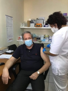”Ο Αντιδήμαρχος Λάμπρος Σκούφης, η Πρόεδρος Δ.Σ. Ευγενία Χαλκιά και η Σύμβουλος εντεταλμένη στην κοινωνική μέριμνα Κατερίνα Καββάδα έδωσαν πρώτοι το “παρών” στον τοπικό εμβολιασμό!”